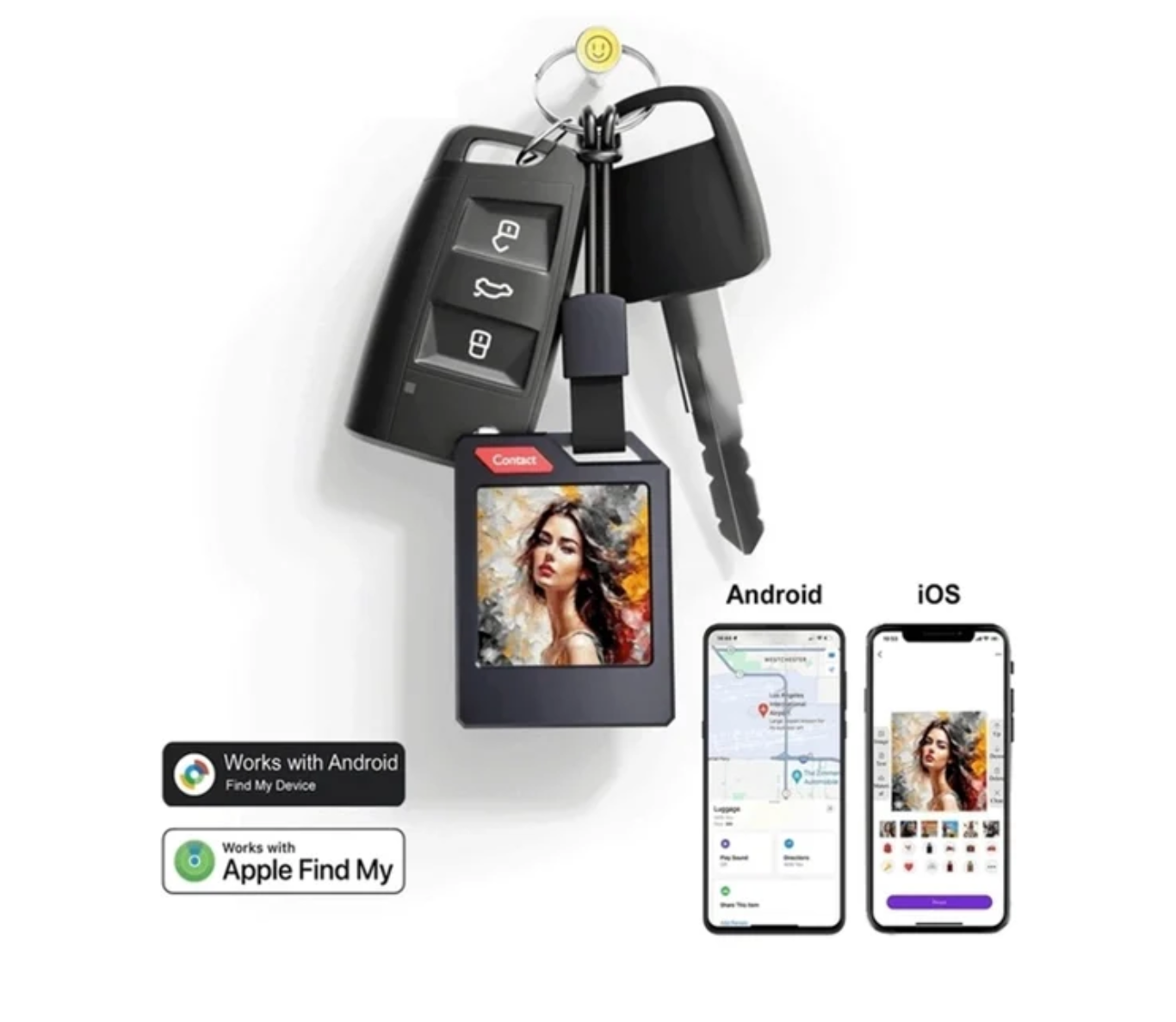 This smart Bluetooth tag combines real-time tracking, a customizable photo display, and an easy “Contact” tab so anyone can reach you if your item is found.